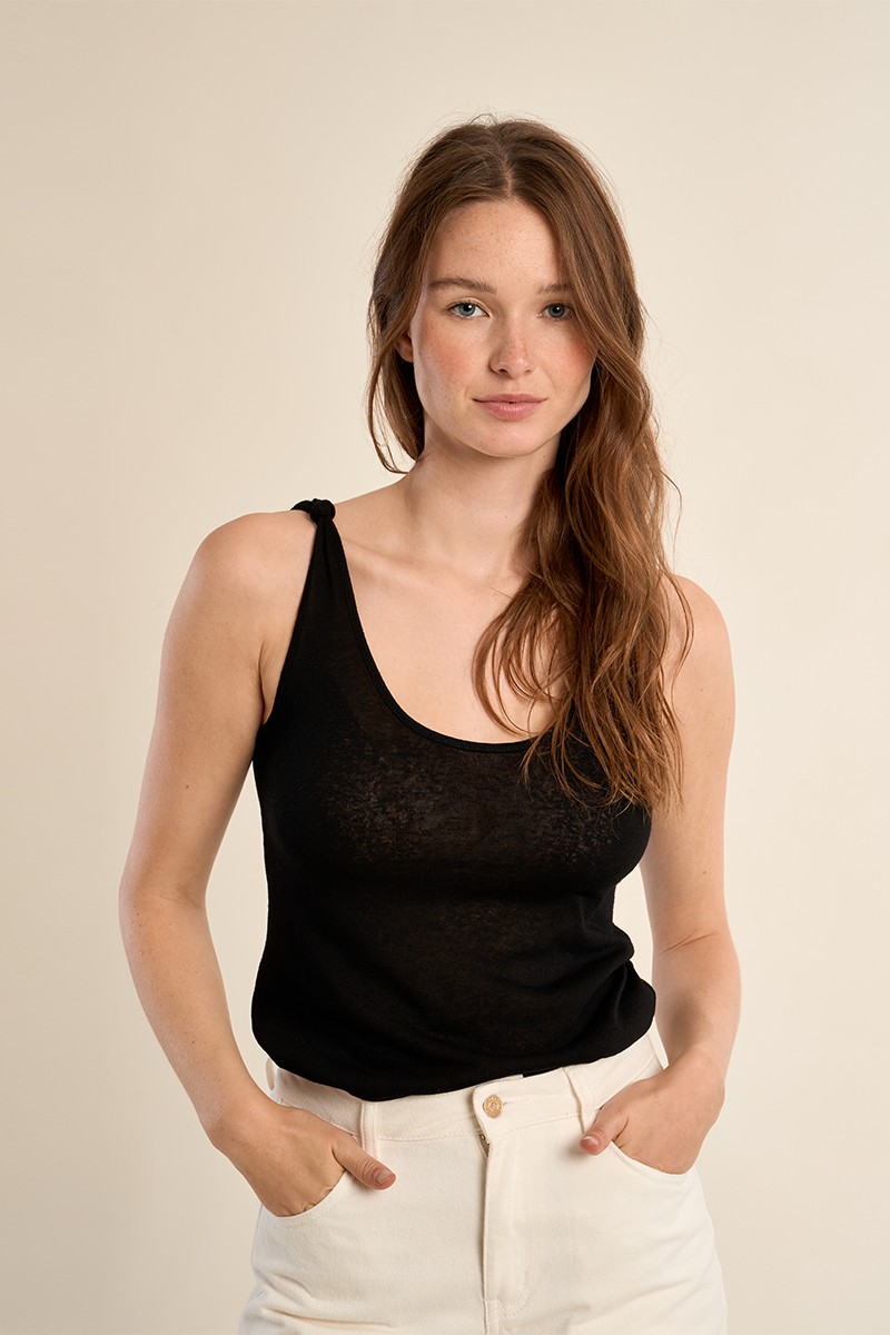 "-Basic terry tank top -Round neck, scooped -Decorative bows on the shoulders -Straight fit -Length from the shoulder 60cm for a size S"
