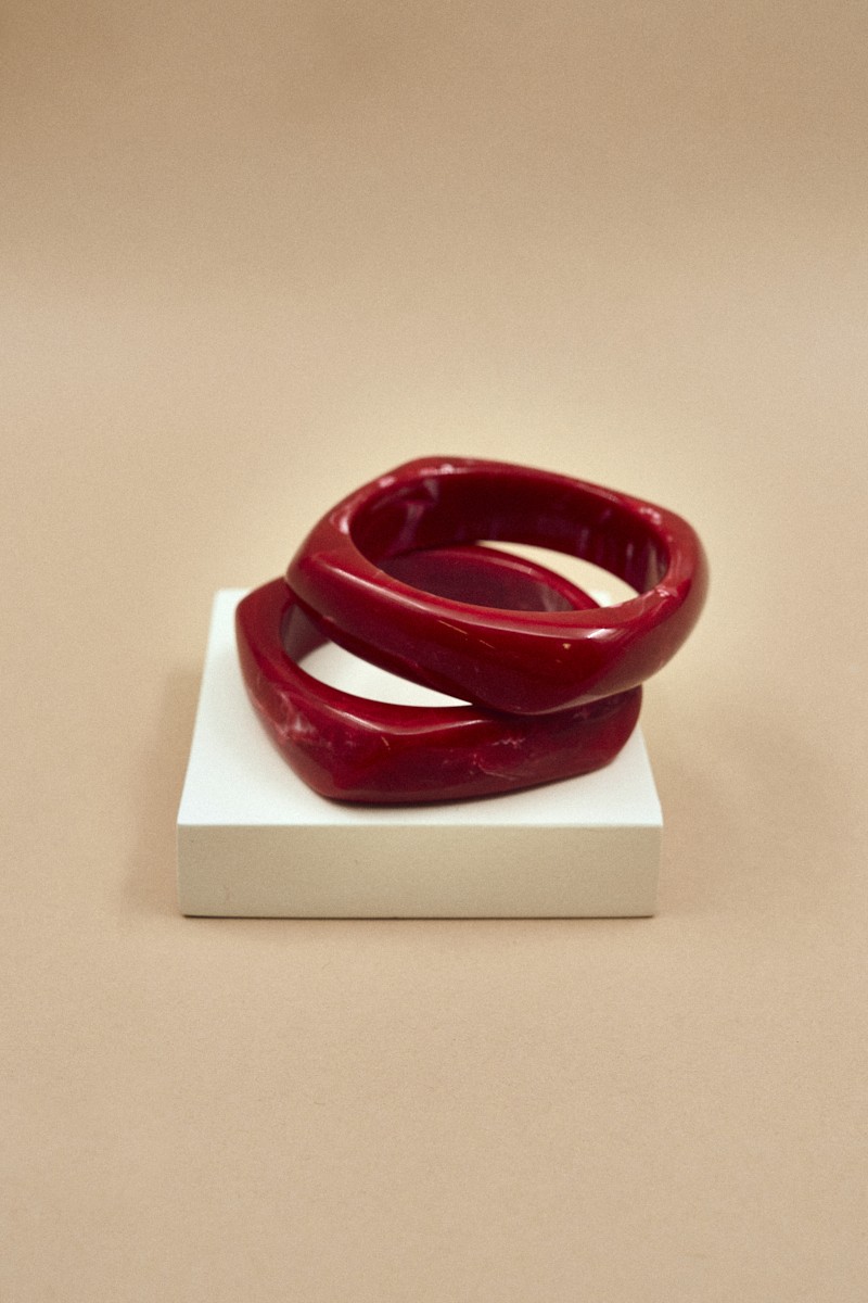 Ankara Red Resin Bracelet, Random Marbling Gradient, Diameter 67mm