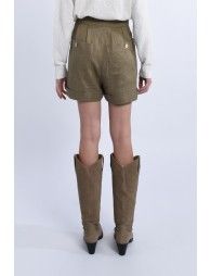 High waist linen shorts, large patch pockets. Length : 40cm Size S