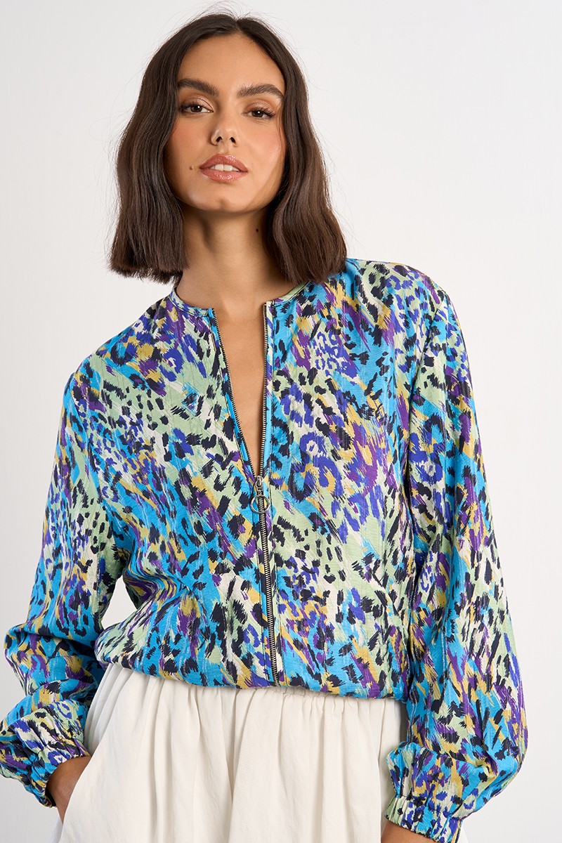 "-Casual bomber jacket with animal print -Long sleeves -Round neck -Zip -Elasticated at the wrists and hips -Length from the shoulder 52cm for a size S"