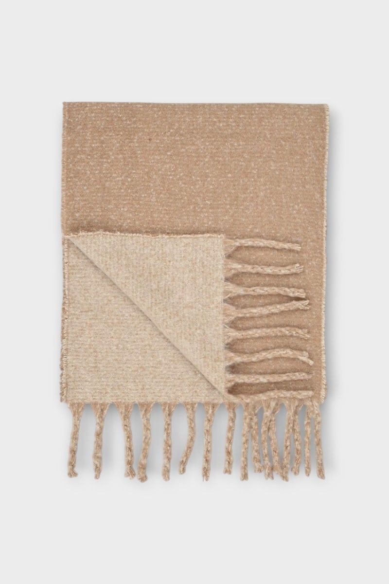 -Wide revestible knit scarf-Bi-color-Fringes at the ends-Length 101 cm for one size fits all