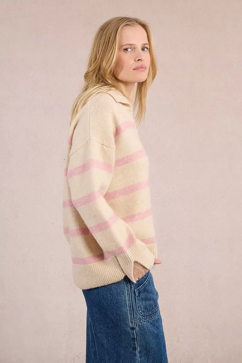 "-Polo-style sweater -Long sleeves -Slit cuffs -Shirt collar -V-neckline -Slightly oversized volume -Length from the shoulder 60 cm (for a size S)"