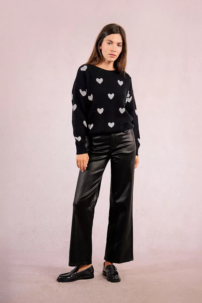 "-Knitted sweater with glittery heart pattern -Long sleeves -Round neckline -Straight fit -Ribbed collar, cuffs and bottom finish -Length from the shoulder 60cm for a size S"