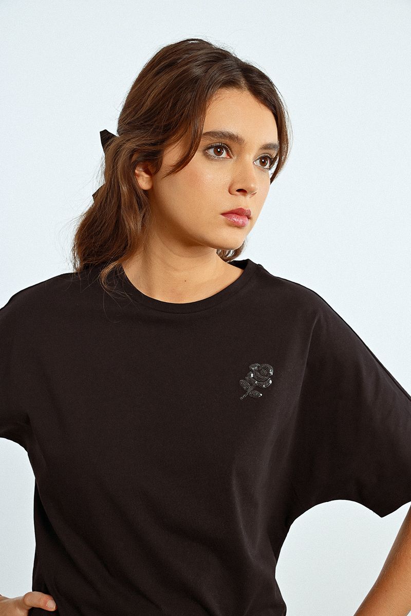 -Sequin rose, embroidered on the chest