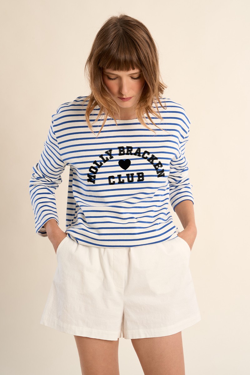 "Long-sleeved T-shirt, striped with inscriptions -Round neck -Straight fit -Length from the shoulder 60cm for a size S"