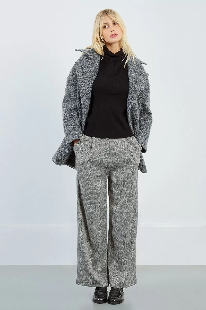 Abrigo midi, de manga larga con cuello y solapa. Modelo de doble botonadura, con bolsillos al bies.
