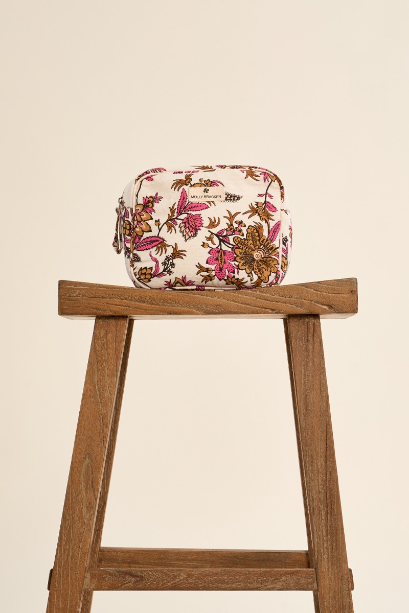 Neceser de tamaño medio con estampado floral y cierre con cremallera.