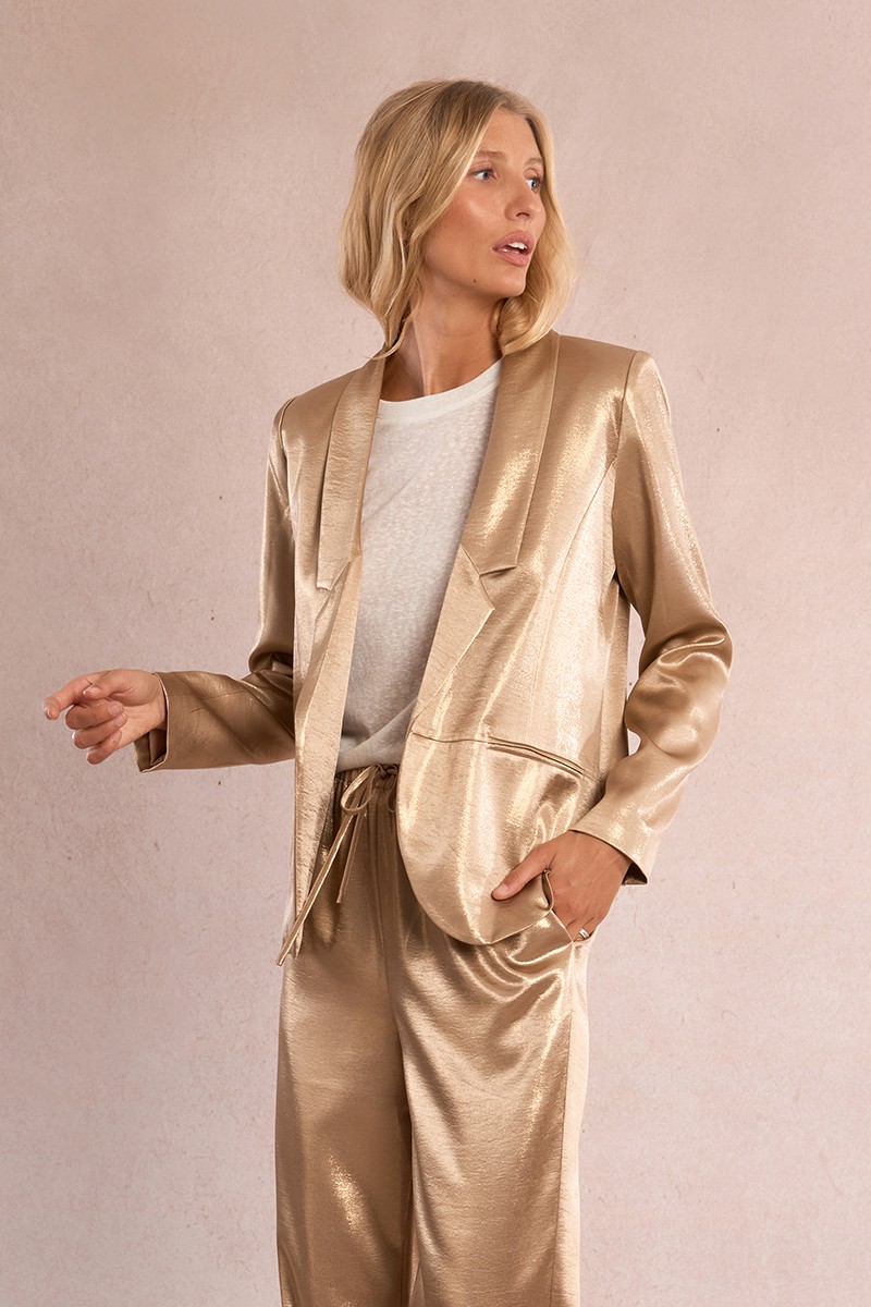 Blazer de manga larga, con cuello y solapa. Modelo en tejido satinado, con bolsillos frontales.