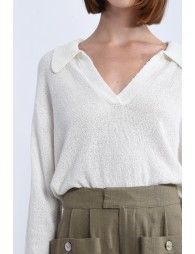 Jersey de manga larga, cuello camisero y escote de pico. Modelo de corte recto, con bajo y puños en punto de canalé.