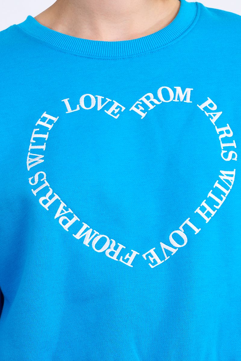 Sudadera de manga larga, cuello redondo y corte amplio. Modelo con estampado de texto y corazón.