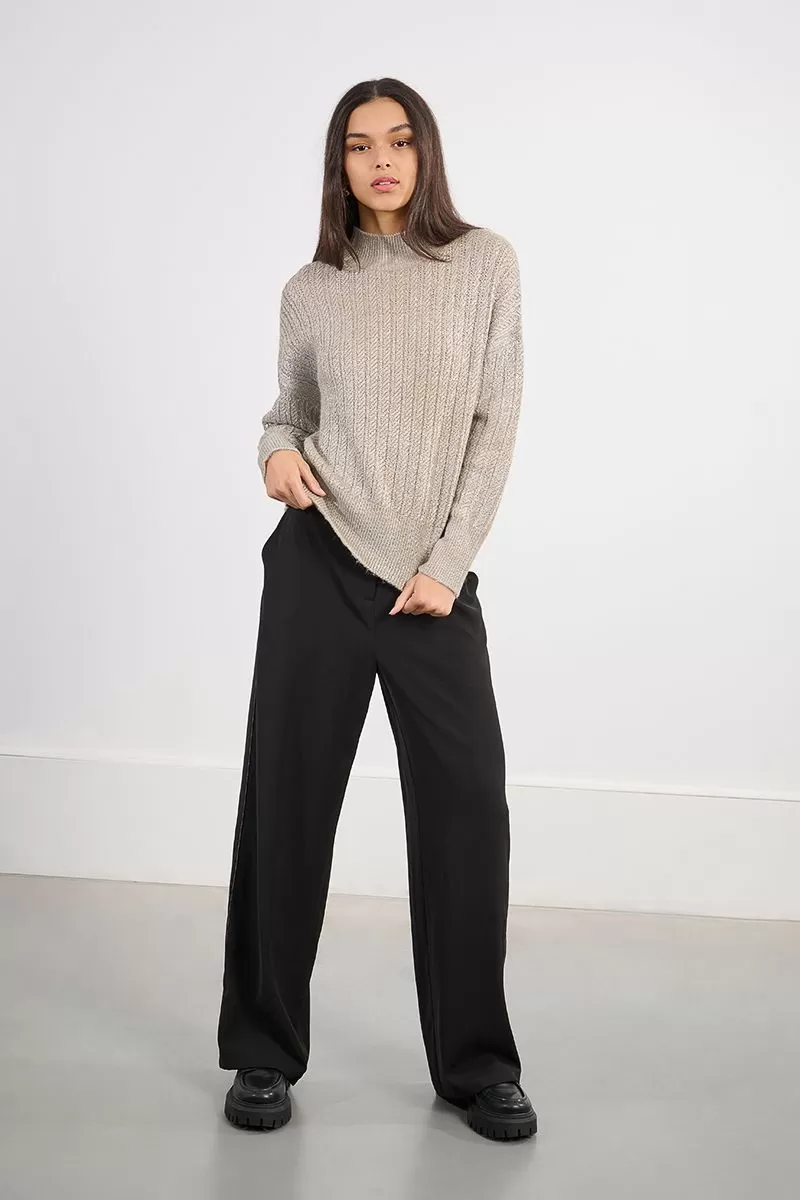 Jersey de manga larga, cuello elevado y corte recto. Modelo en punto mezclado.