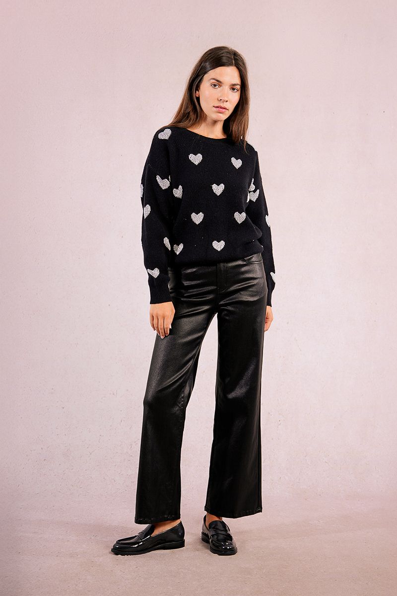 Jersey de manga larga, cuello redondo y corte recto. Modelo con estampado de corazones.