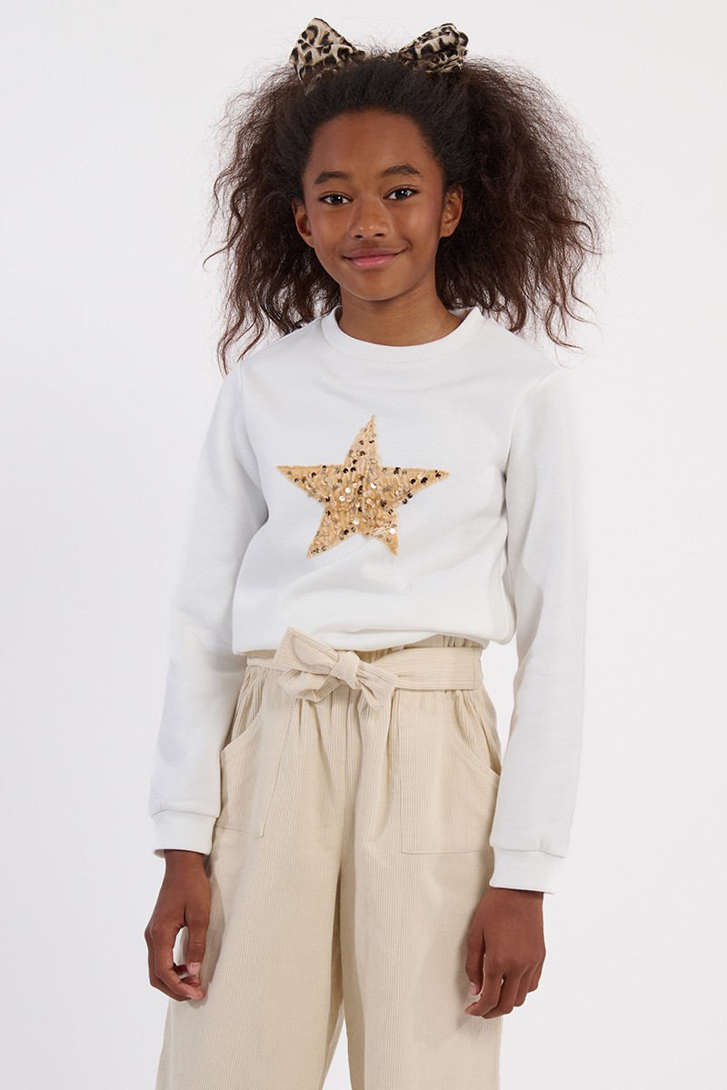 Sudadera de manga larga, cuello de barco y corte recto. Modelo con estampado de estrella y lentejuelas.