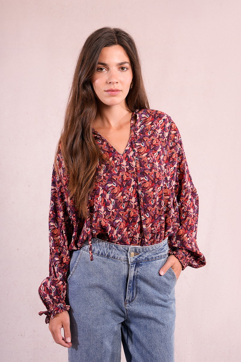 -Col officier à fronces, réhaussé d'un décolleté en V