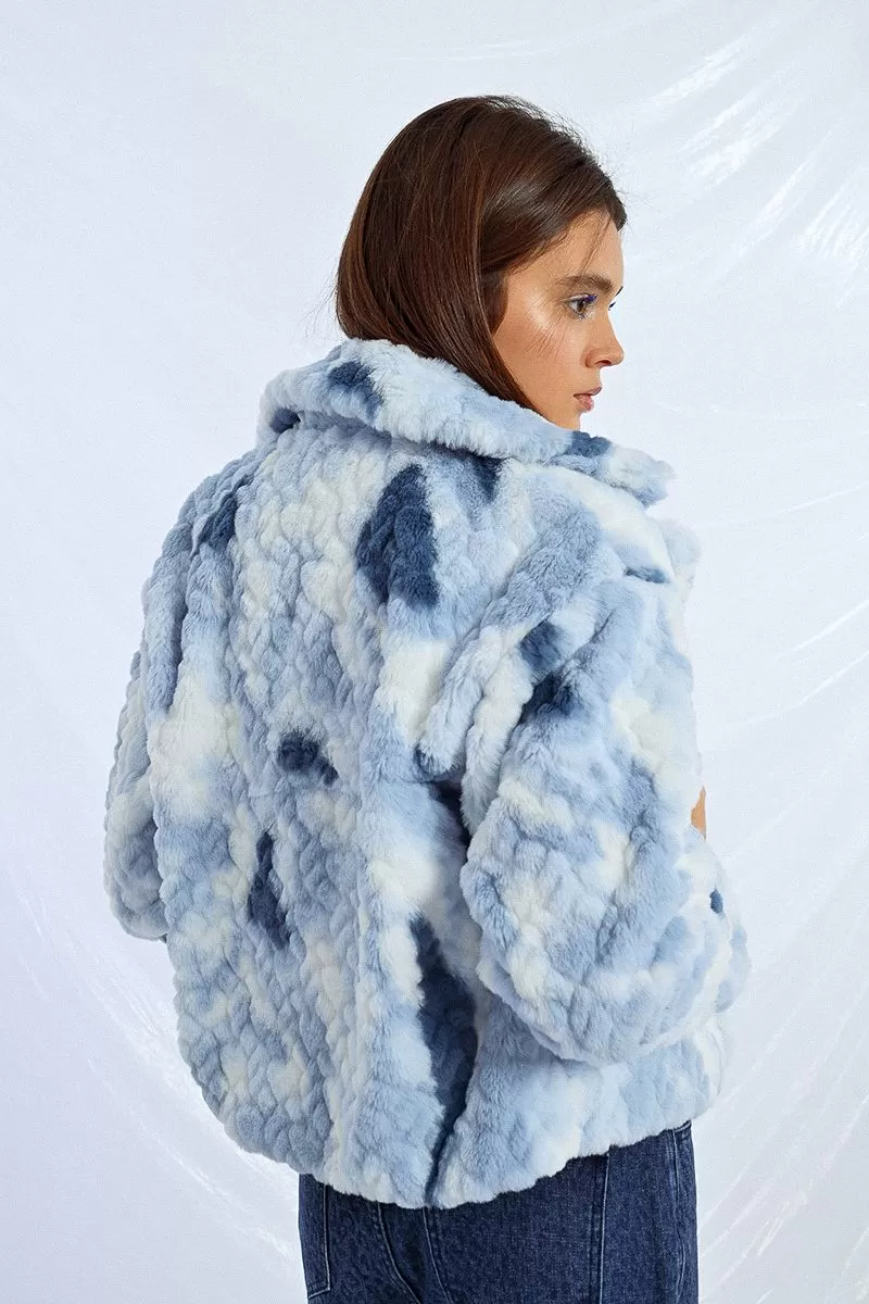 "-Blouson en fausse fourrure coloré -Manches longues -Large col châle -Coupe courte et large -Entièrement doublée -Fermeture par boutons pressions sur le milieu devant -Longueur depuis l'épaule 57cm pour une taille S"
