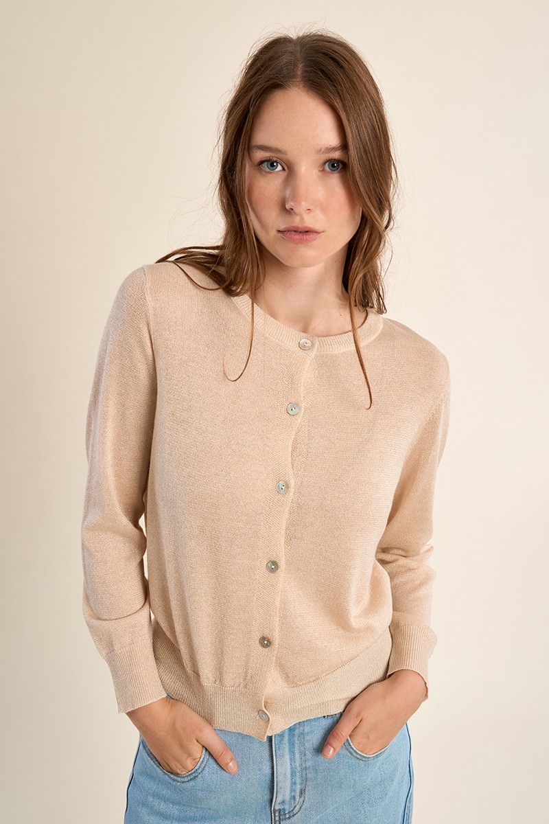 "-Gilet en maille fine -Manches longues -Boutonné sur toute la longueur devant -Longueur depuis l'épaule 55cm pour une taille S"