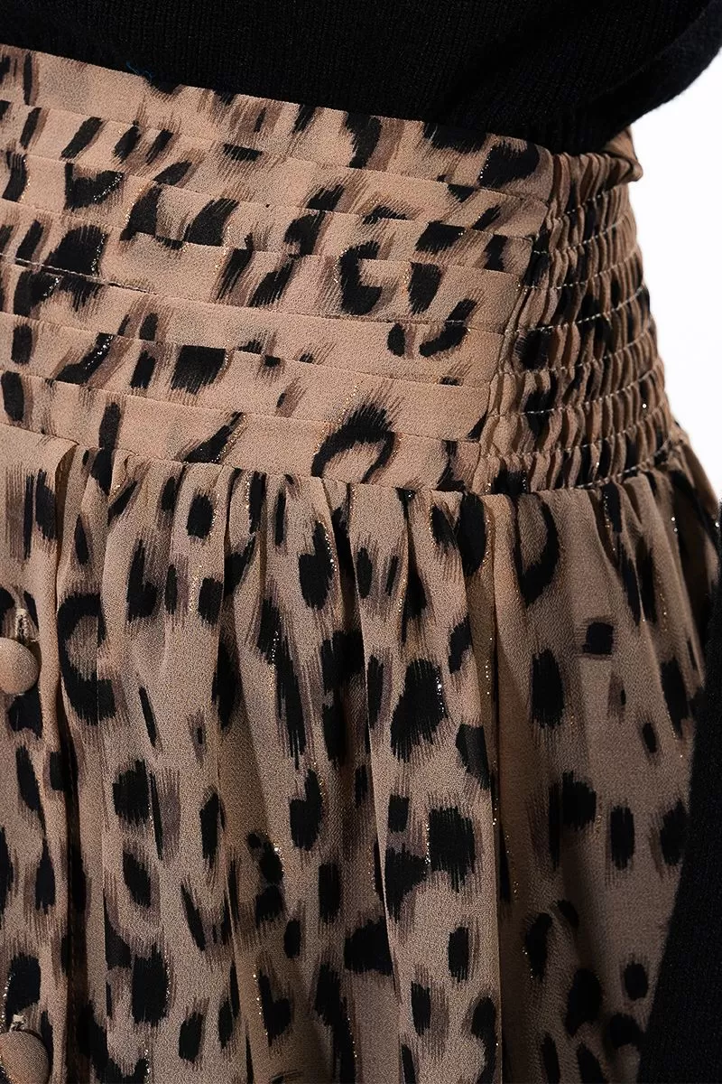 "-Longue jupe en voile semi-transparente -Imprimé léopard légèrement irisé -Taille haute à plis -Fente boutonnée sur l'un des deux côtés devant -Boutons recouverts -Partiellement doublée -Coupe droite -Longueur depuis le côté 92cm pour une taille S"