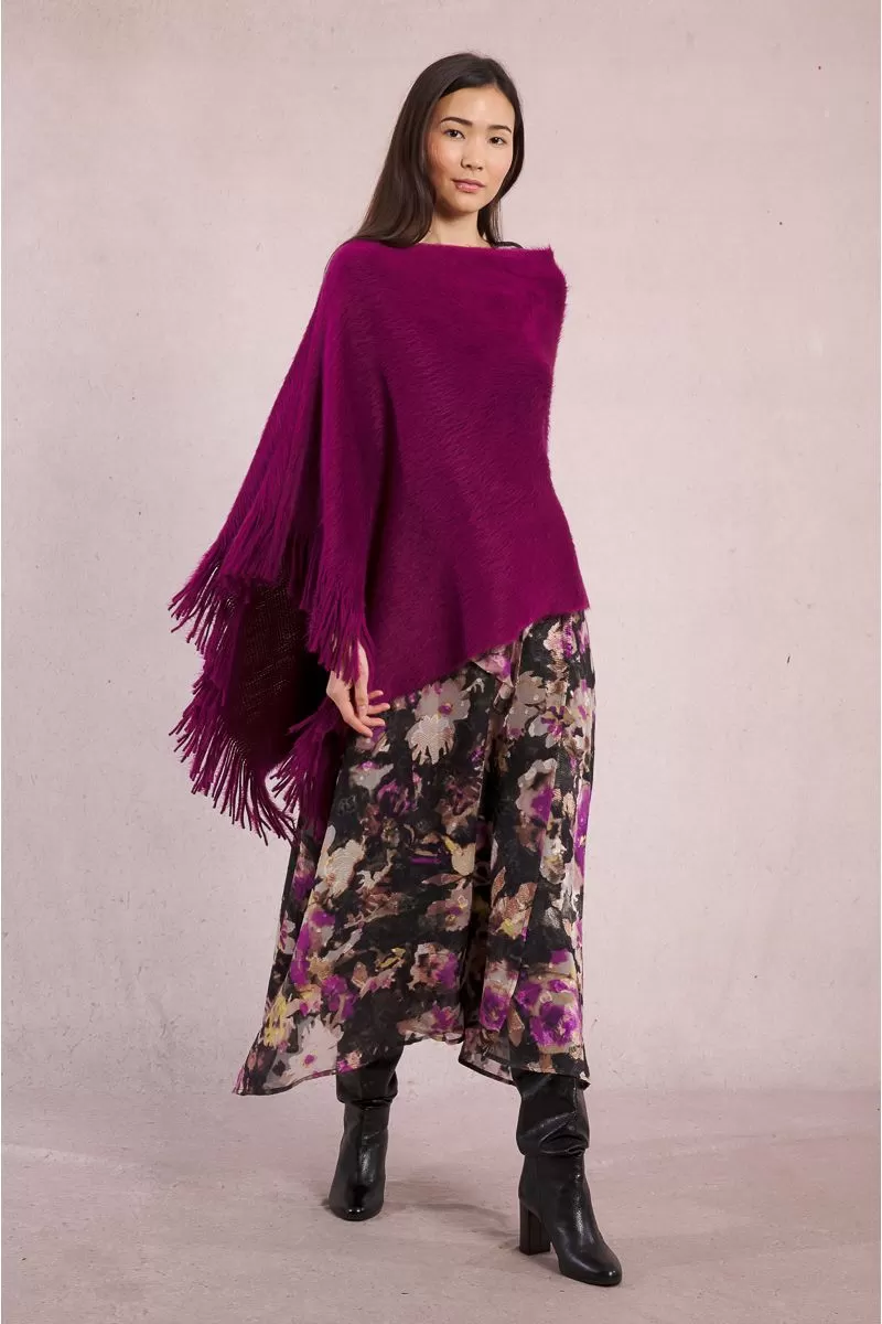 "-Poncho doux -Extrémités à franges -Large encolure V -Bas asymétrique -Longueur depuis l'épaule 83cm pour une taille unique"
