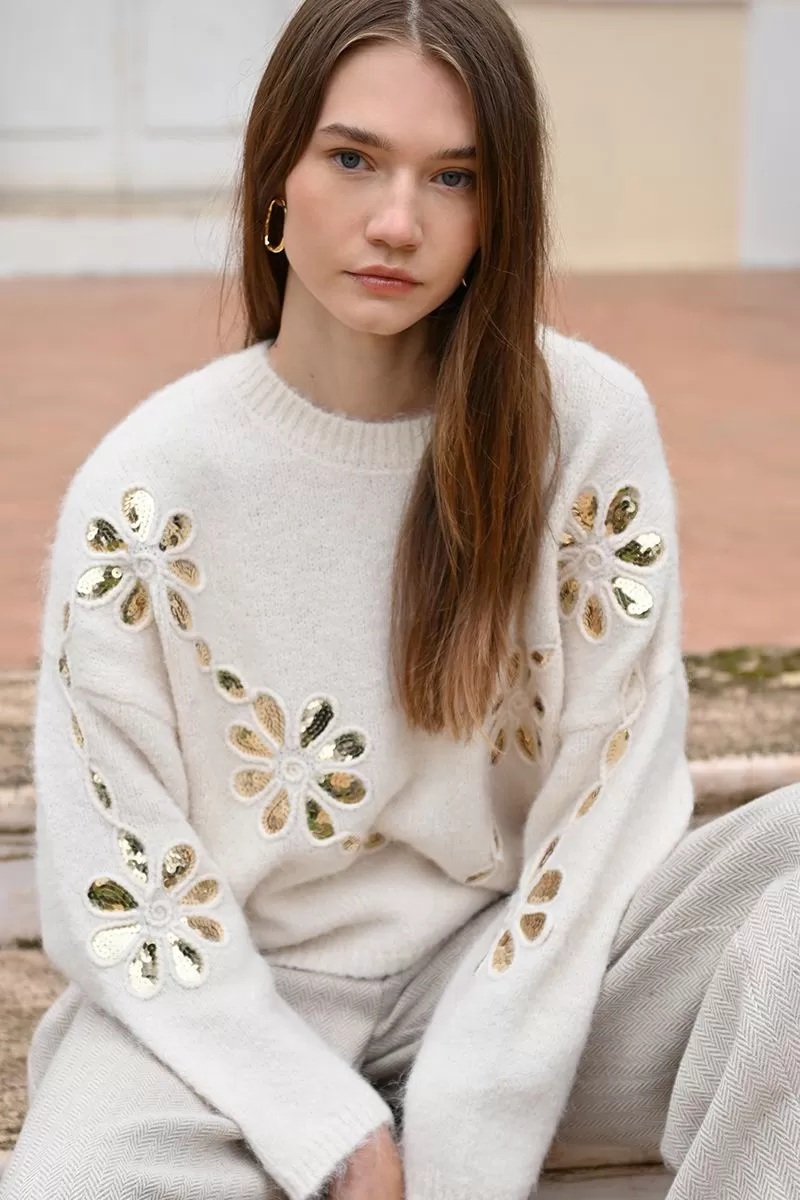 -Pull en maille avec insert sequins dans des découpes en forme de fleurs