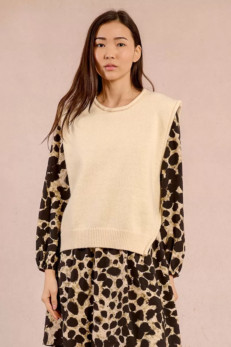 "-Pull droit en maille -Sans manches -Fermeture par boutons sur les côtés devant -Encolure ronde -Longueur depuis l'épaule 53cm pour une taille S"