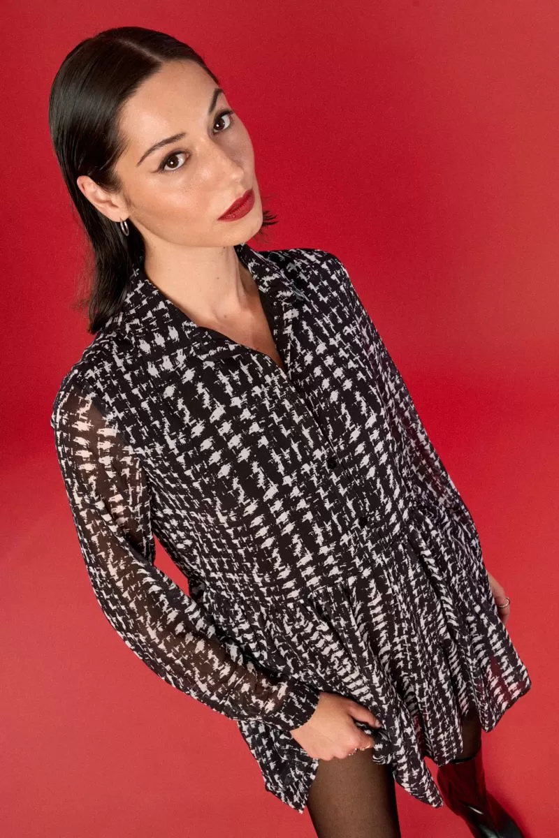"-Robe chemise imprimée -Manches longues, poignets resserrés -Col chemisier -Partiellement doublée -Multi-volants sur toute la longueur de jupe -Fermeture par boutons sur le haut devant -Partiellement doublée -Longueur depuis l'épaule 86cm pour une taille S"