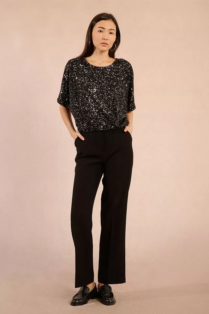 "-Top en sequins -Larges manches courtes -Bas vêtement resserré -Ouverture latérale au dos -Longueur depuis l'épaule 55 cm (pour une taille S)"