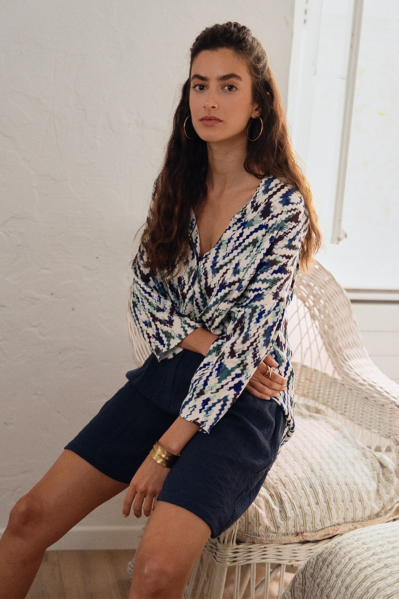 "-Top imprimé graphique -Col rond avec découpe -Manches mi-longues -Asymétrique -Longueur depuis l'épaule 64cm pour une taille S"